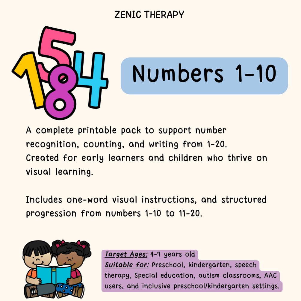 This printable pack is designed to help children confidently learn numbers 1 through 10 through engaging, developmentally appropriate tasks. Whether you're a parent, teacher, or homeschooler, these visual-based worksheets are ideal for toddlers, preschoolers, and children with special needs.